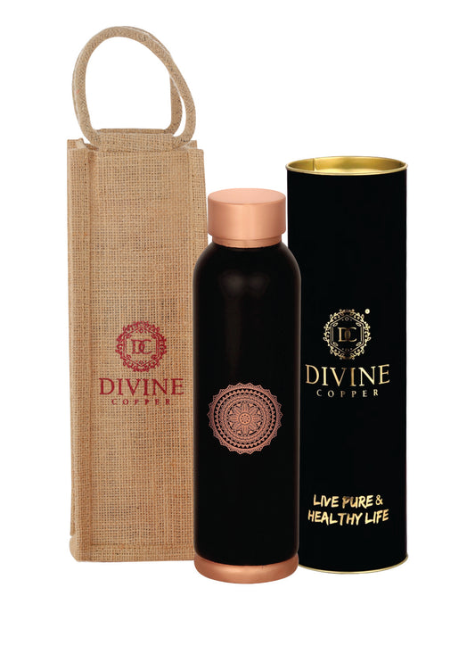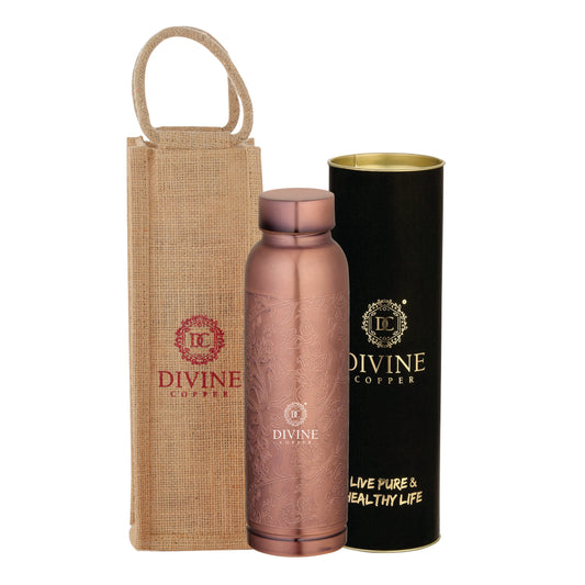 Oreo Pure copper bottle 1000ml antique embossed with free Jute carry bag