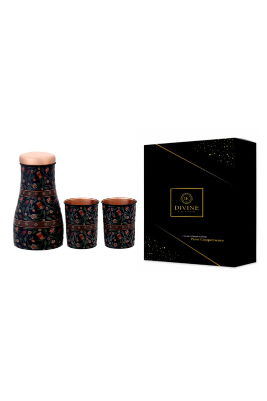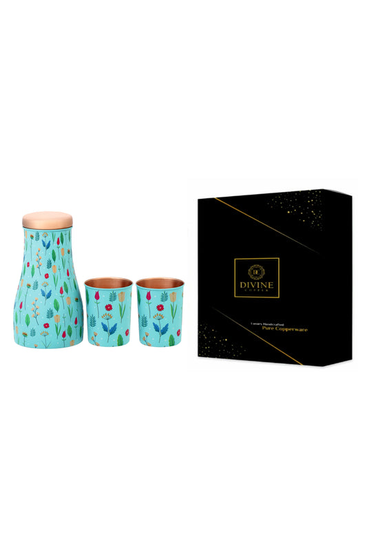 Jar - Colourful Flower Print Pure Copper Jar With Pack of 2 Glass