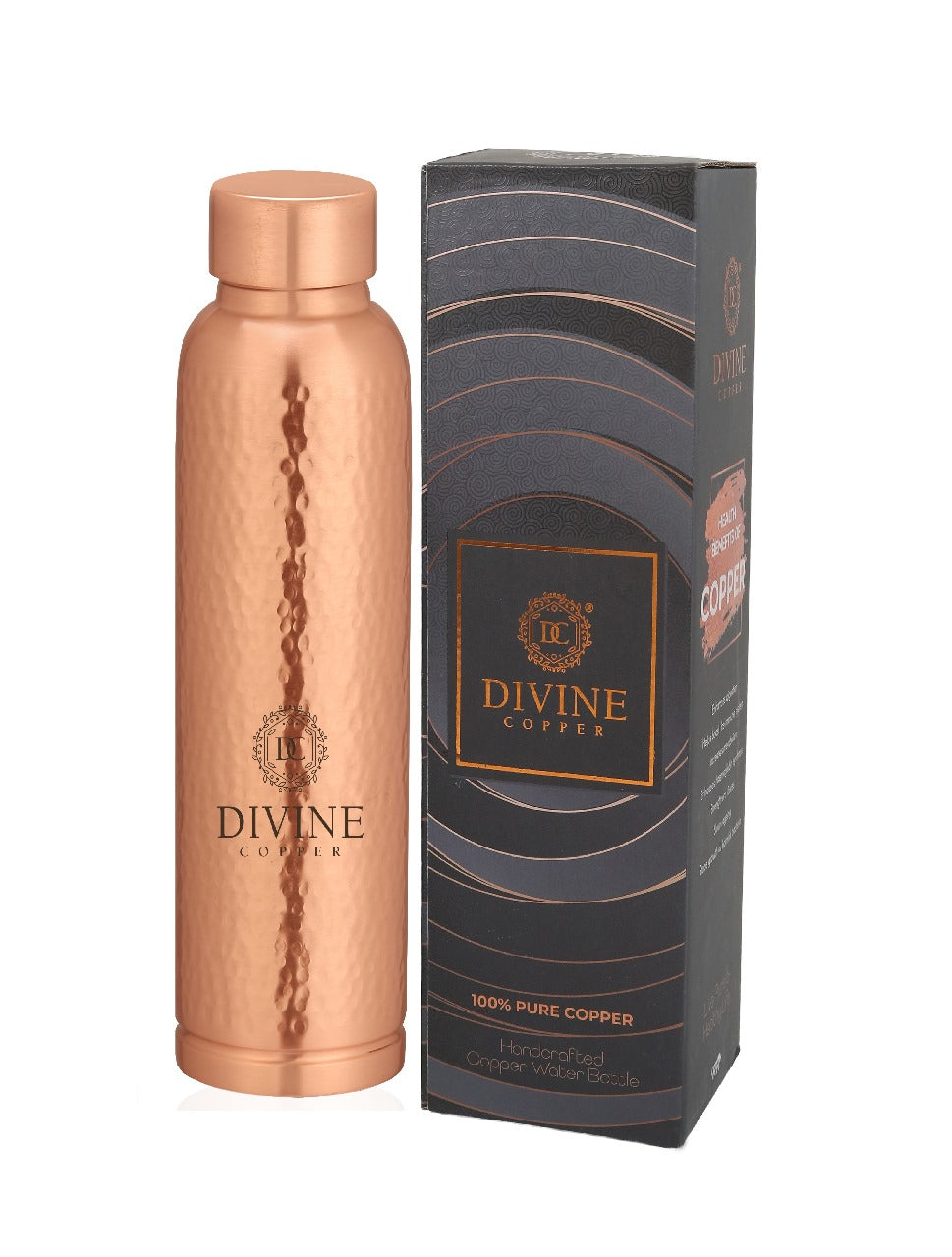 Divine copper Oreo Premium Copper Water Bottle, 99% Pure Copper, Antibacterial, Handcrafted, Best for Gifts, Easy to Clean, Leak-Proof (Gift Pack, Oreo Hammered Natural Color)